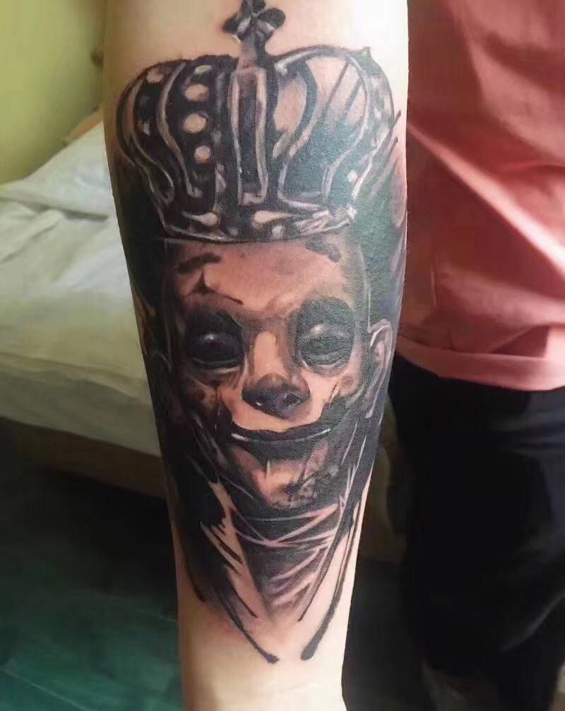 当前位置: 首页 >广东省湛江市纹身店-家文刺青Tattoo纹身图案>小丑纹身图片_手臂纹身图案