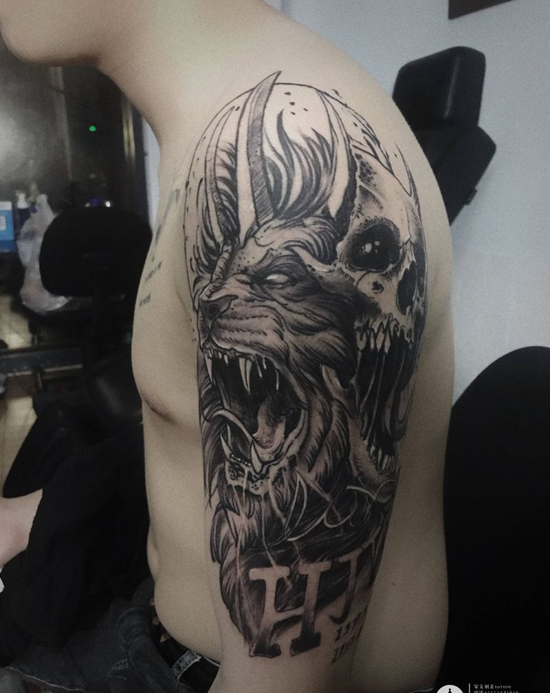 • 纹身吧推荐的披肩图腾半胛纹身图案作品展示