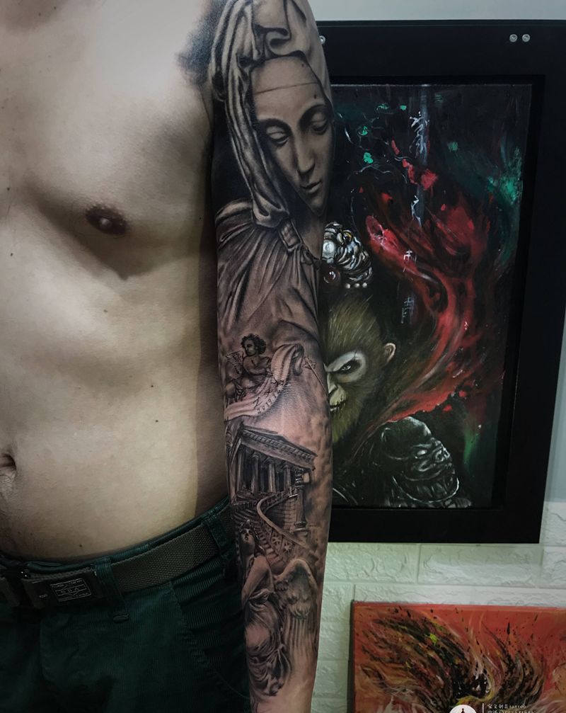 当前位置: 首页 >广东省湛江市纹身店-家文刺青Tattoo纹身图案>花臂待续纹身图片_手臂纹身图案