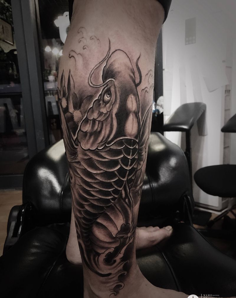 当前位置: 首页 >广东省湛江市纹身店-家文刺青Tattoo纹身图案>传统鱼纹身图片_腿部纹身图案