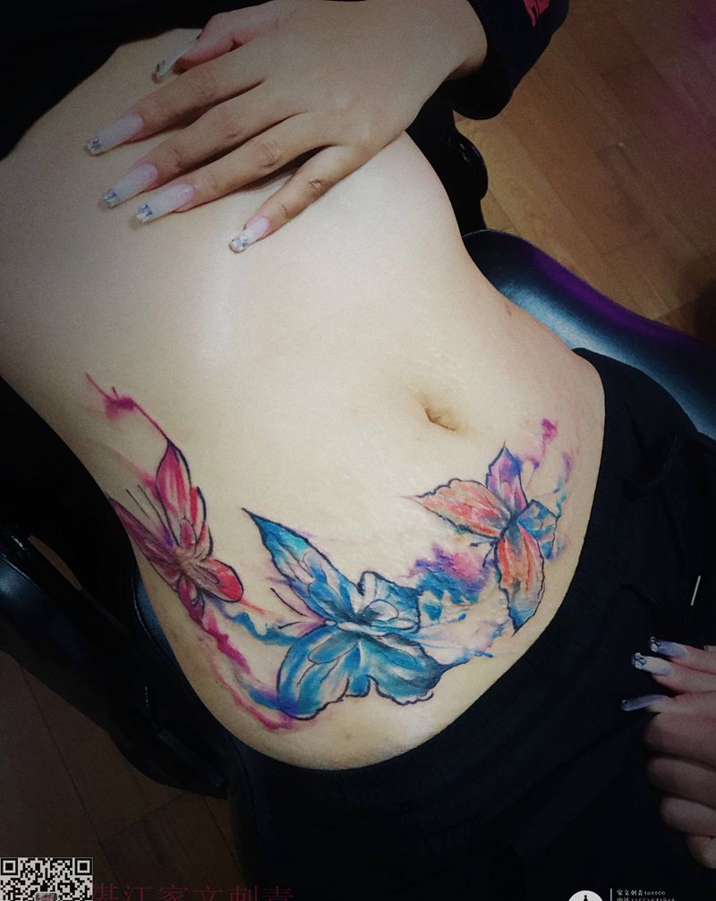 疤痕跟壬辰纹遮盖纹身图片_腰部纹身图案