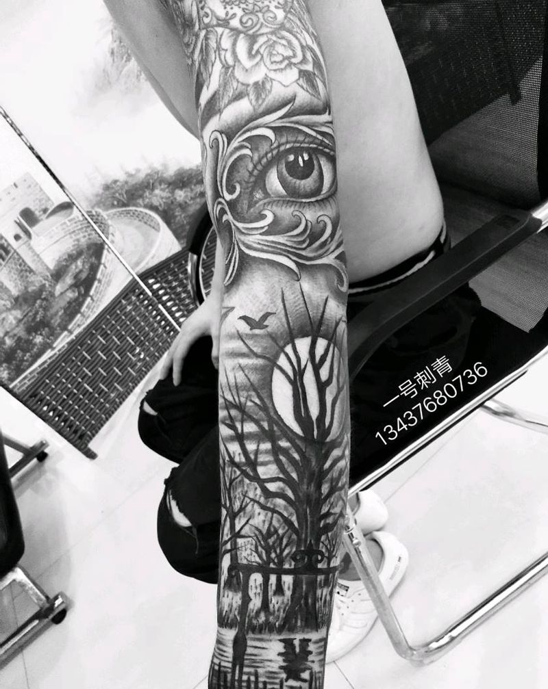 当前位置: 首页 >广东省惠州市纹身店-瑞刺工作室纹身图案>花臂拼接纹身图片