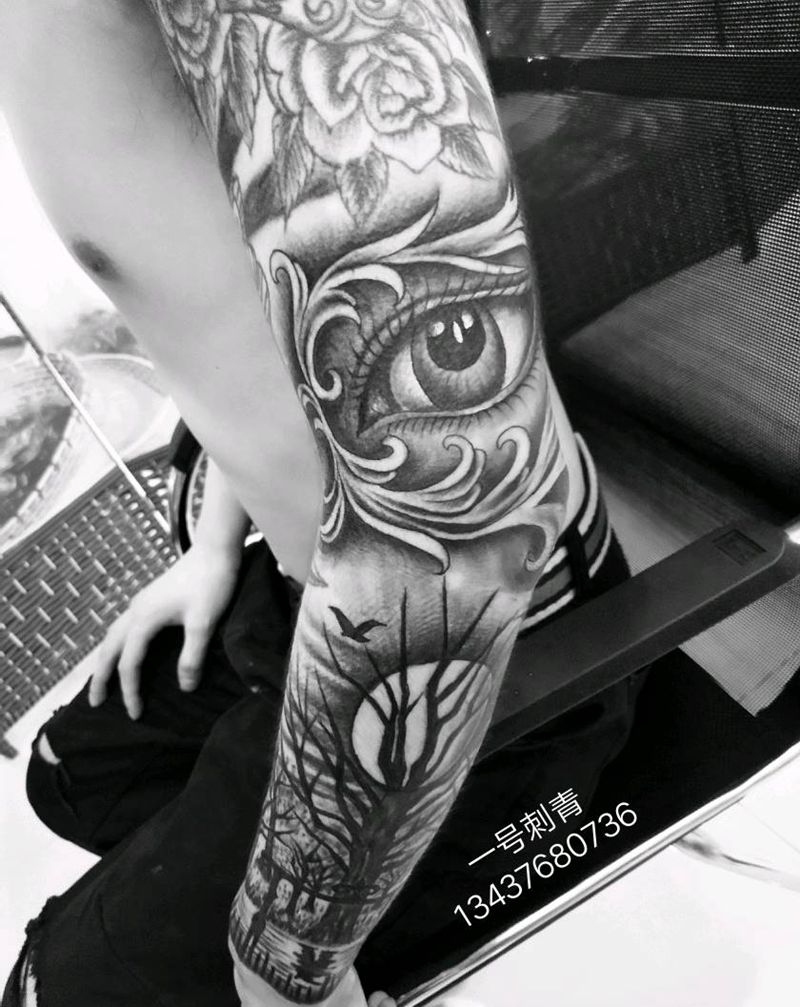 当前位置: 首页 >广东省惠州市纹身店-瑞刺工作室纹身图案>花臂拼接纹身图片