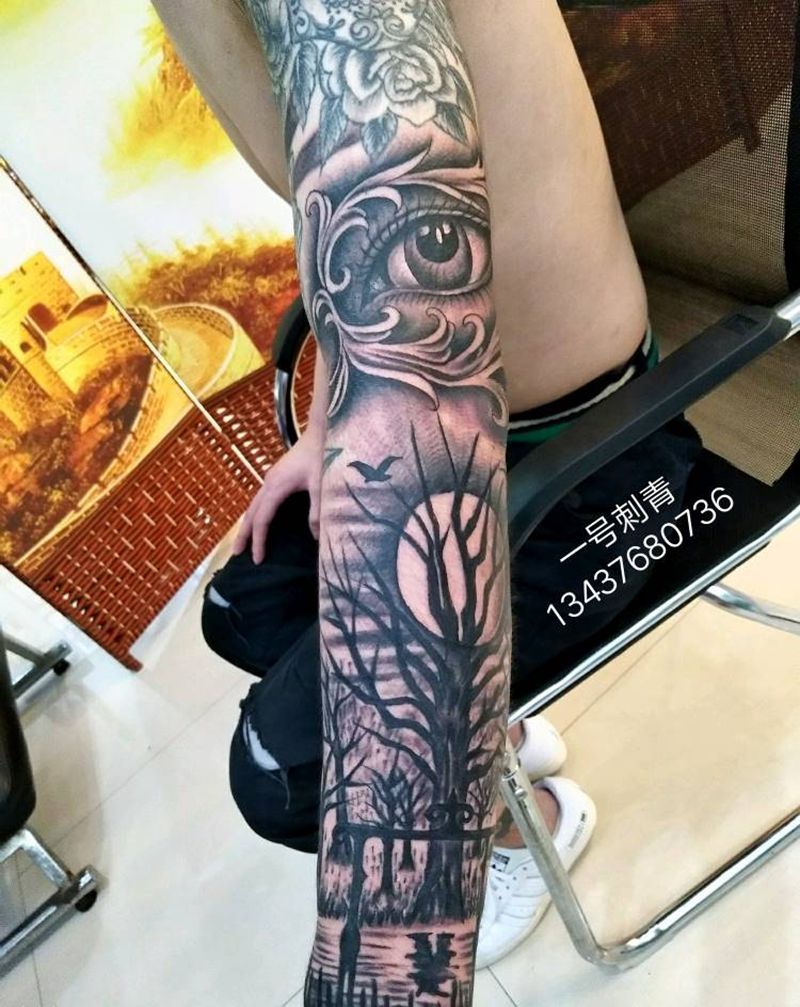 当前位置: 首页 >广东省惠州市纹身店-瑞刺工作室纹身图案>花臂拼接纹身图片