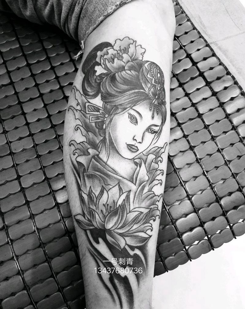 • T网红王老大花腿龙纹身图片_腿部新传统纹身图案