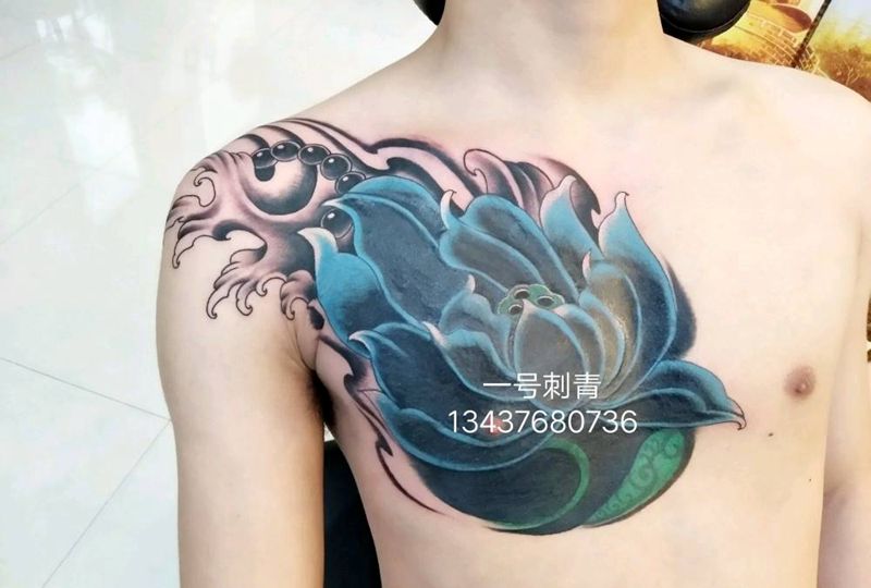 • 女性大花胸纹身_43张霸气漂亮的女性大花胸纹身图案作品