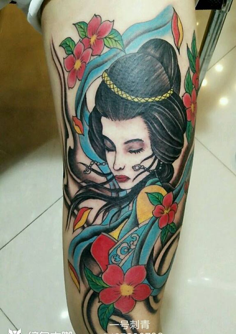 • T网红王老大花腿龙纹身图片_腿部新传统纹身图案
