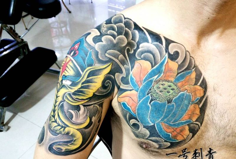 • 女性大花胸纹身_43张霸气漂亮的女性大花胸纹身图案作品