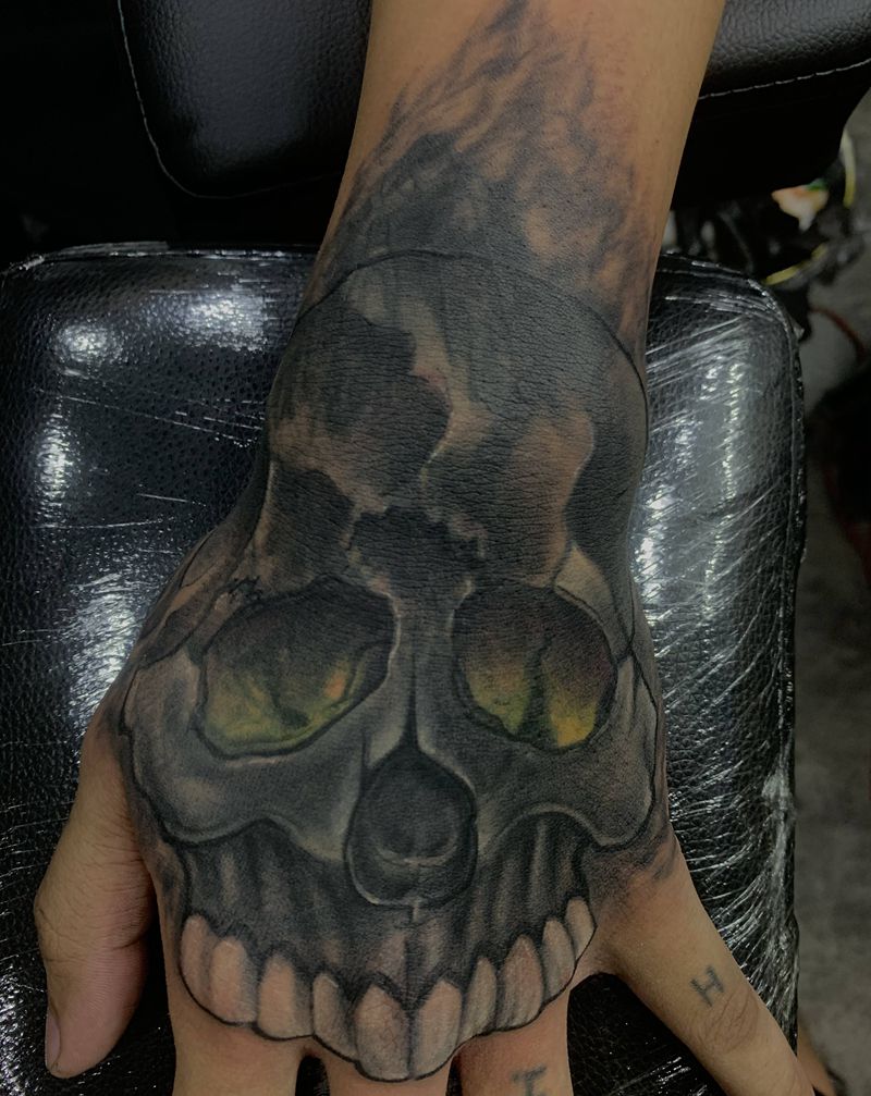 • 手背潮流时尚的玫瑰花眼睛纹身图案