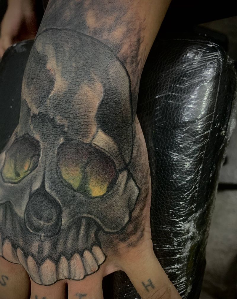 • 手背潮流时尚的玫瑰花眼睛纹身图案