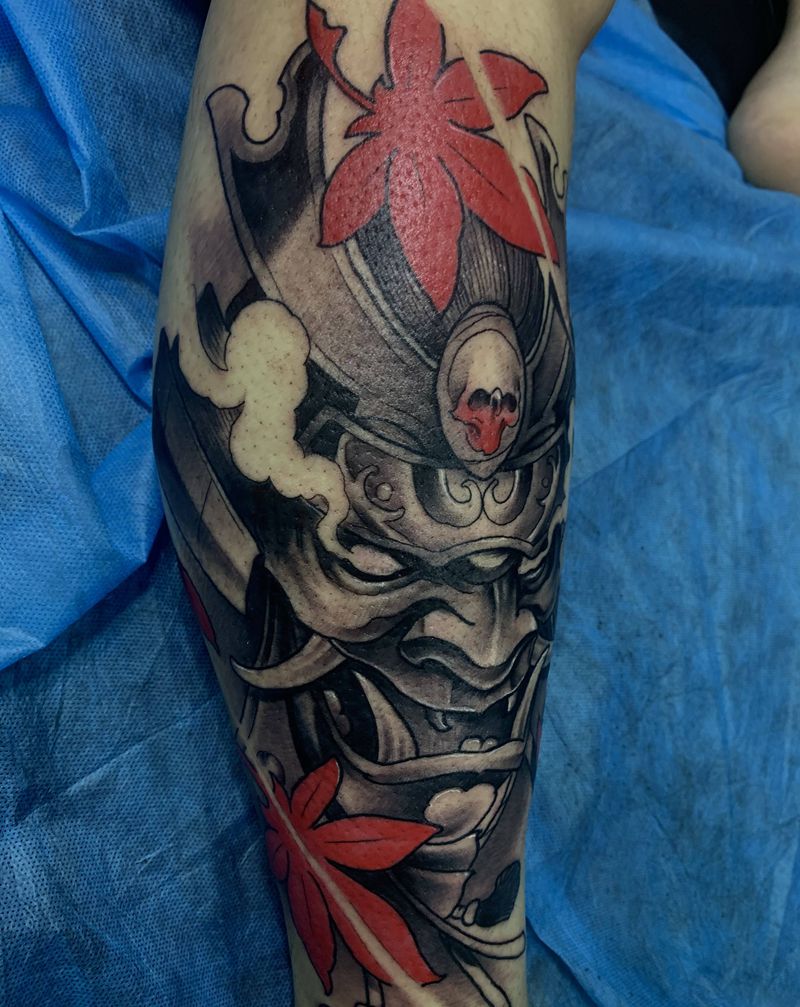 鬼武士纹身图片_脚部纹身图案