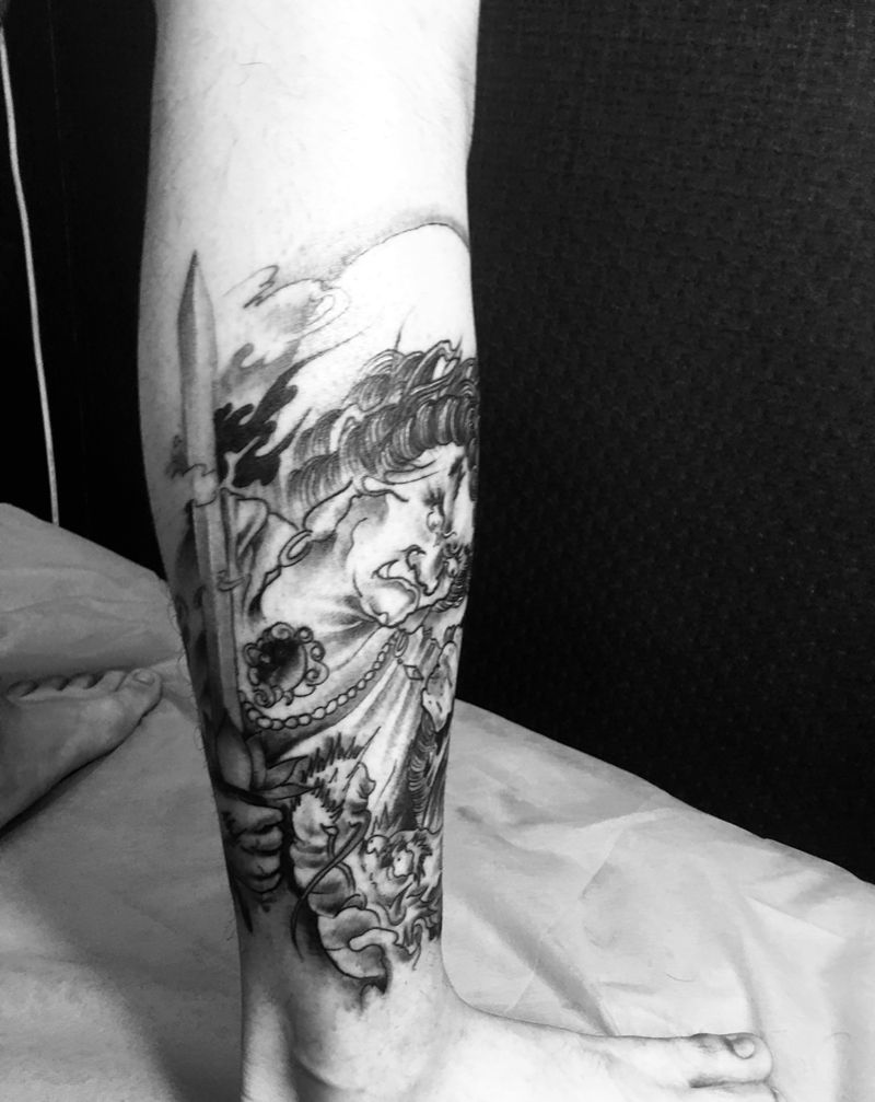 • T网红王老大花腿龙纹身图片_腿部新传统纹身图案