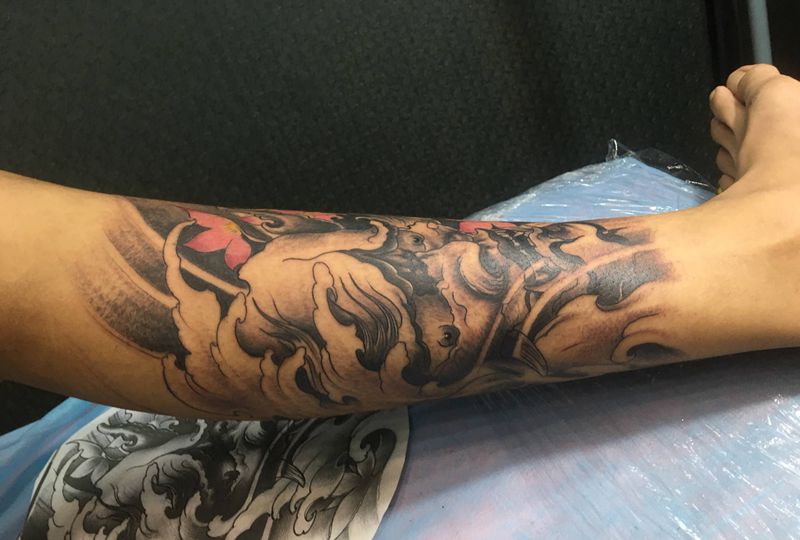 • T网红王老大花腿龙纹身图片_腿部新传统纹身图案