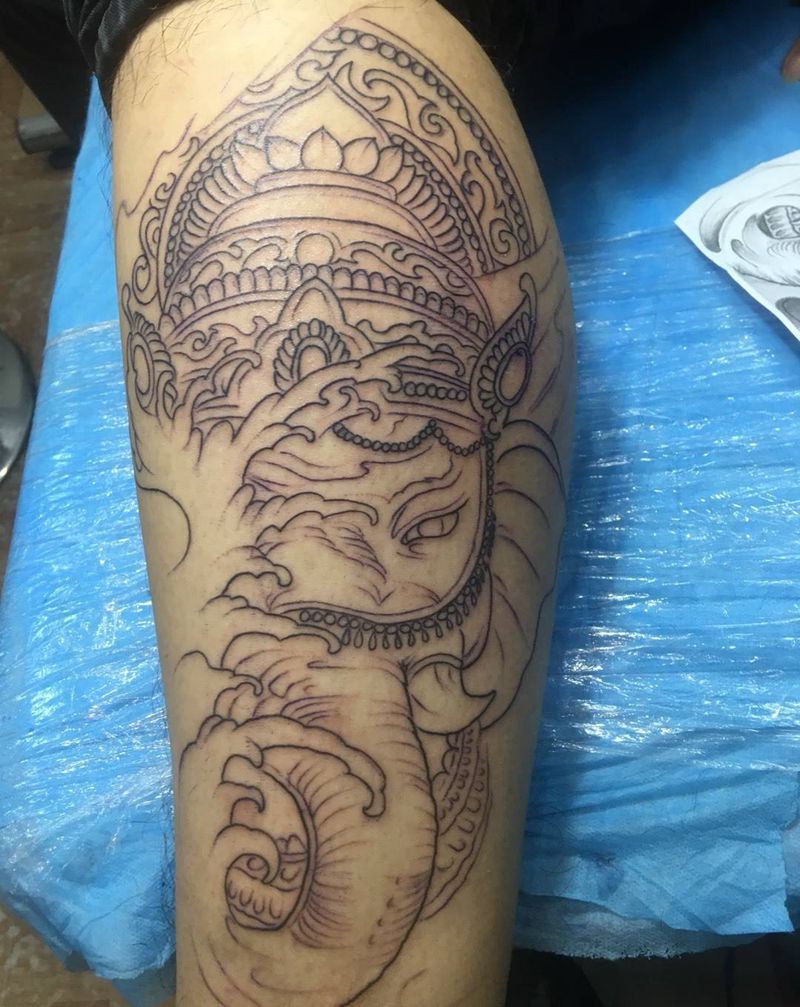 当前位置: 首页 >广东省茂名市纹身店-品刺青纹身图案>象神线条纹身图片