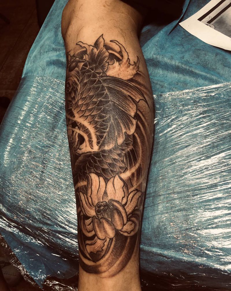 小腿鲤鱼纹身图片_脚部纹身图案