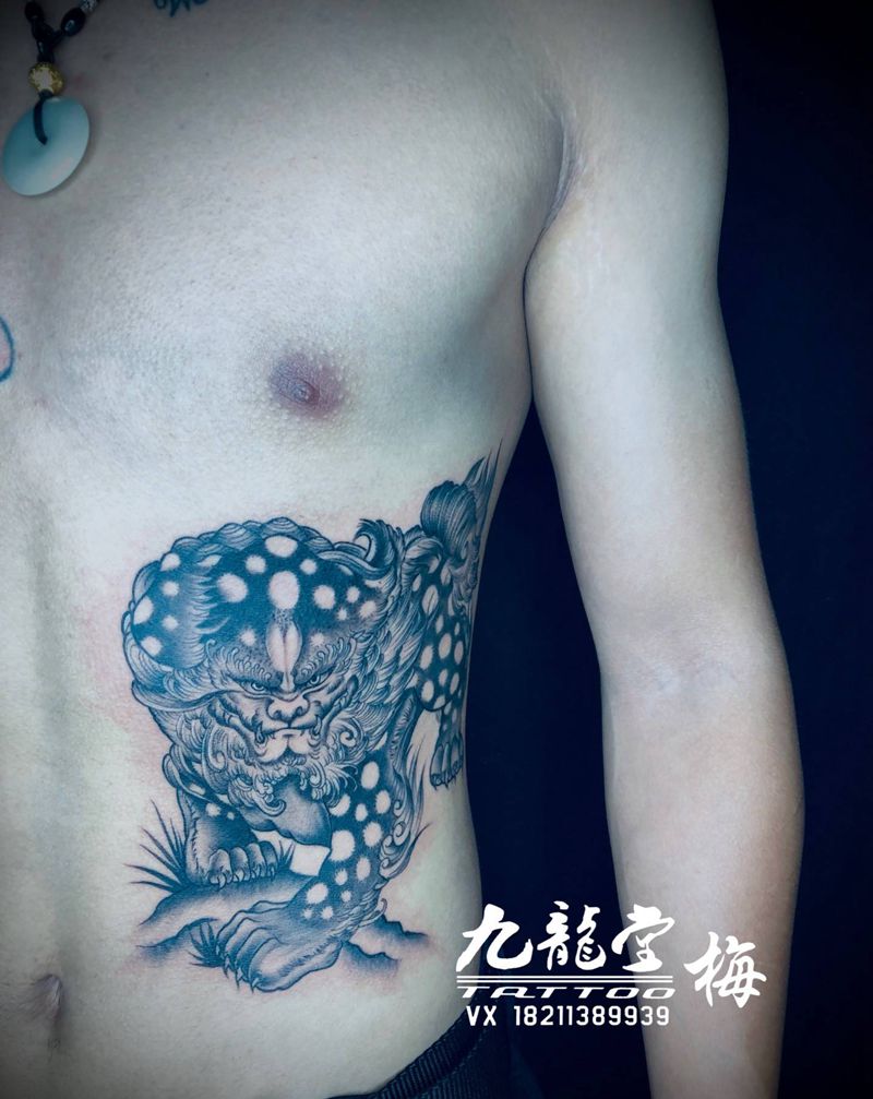 当前位置: 首页 >广东省惠州市纹身店-九龙堂刺青纹身图案>唐狮纹身图片_腰部老传统纹身图案
