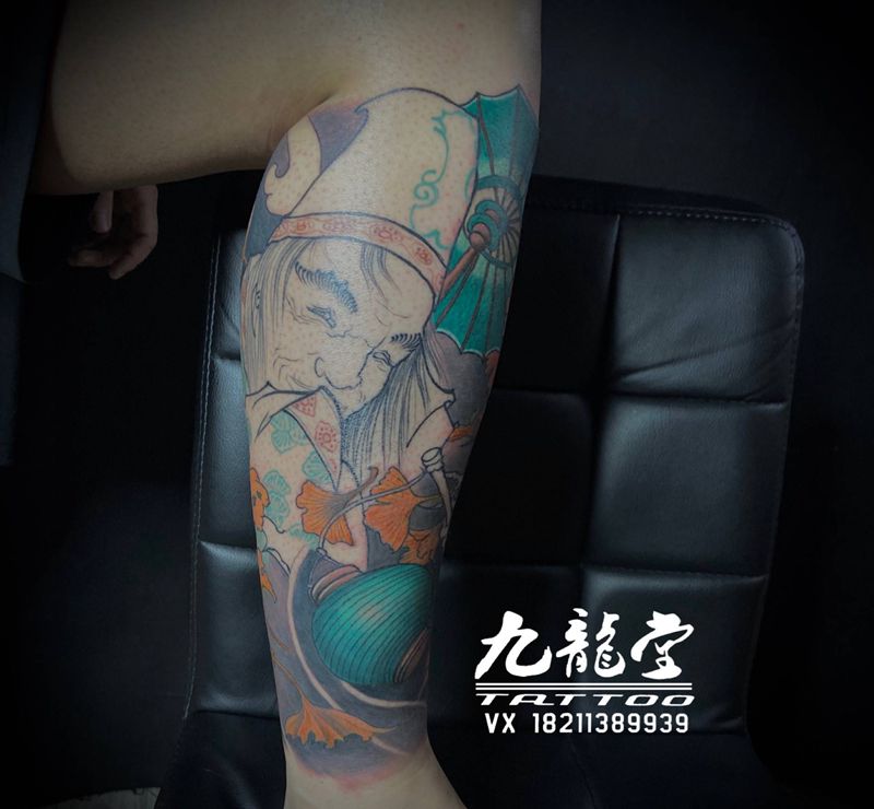 • T包小腿吹火男+阿多福纹身图片_腿部老传统新传统吹火男阿