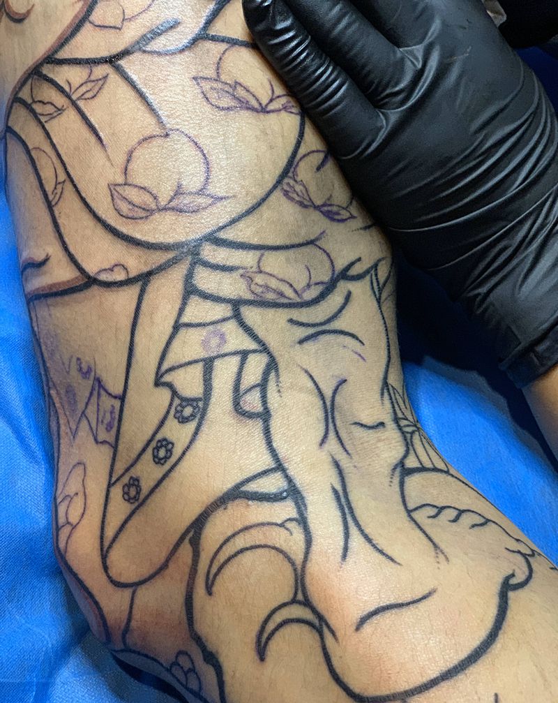 日式大花腿,纹身图片_脚部腿部老传统纹身图案