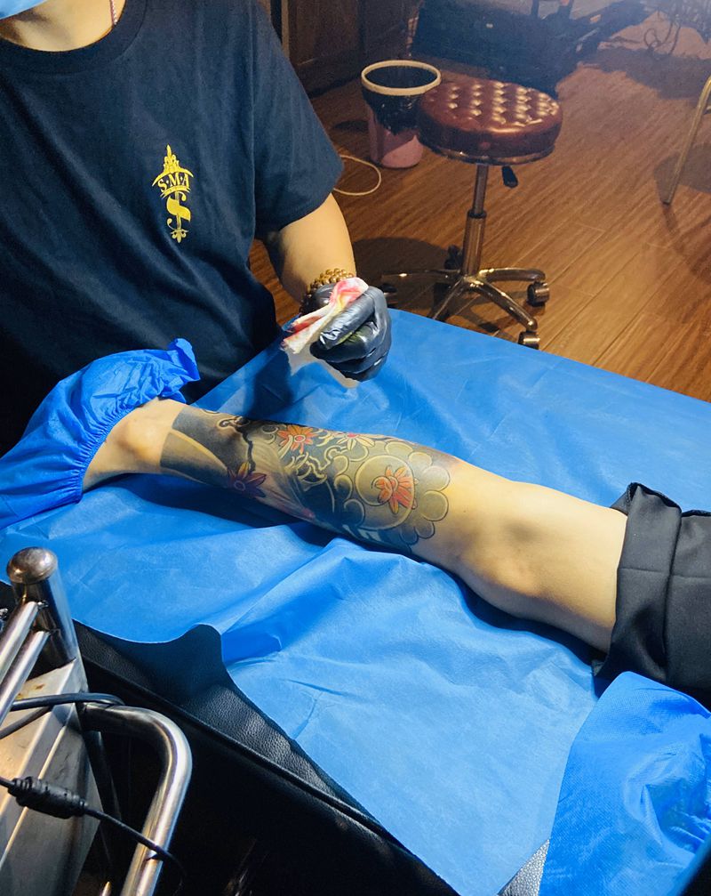 • T网红王老大花腿龙纹身图片_腿部新传统纹身图案