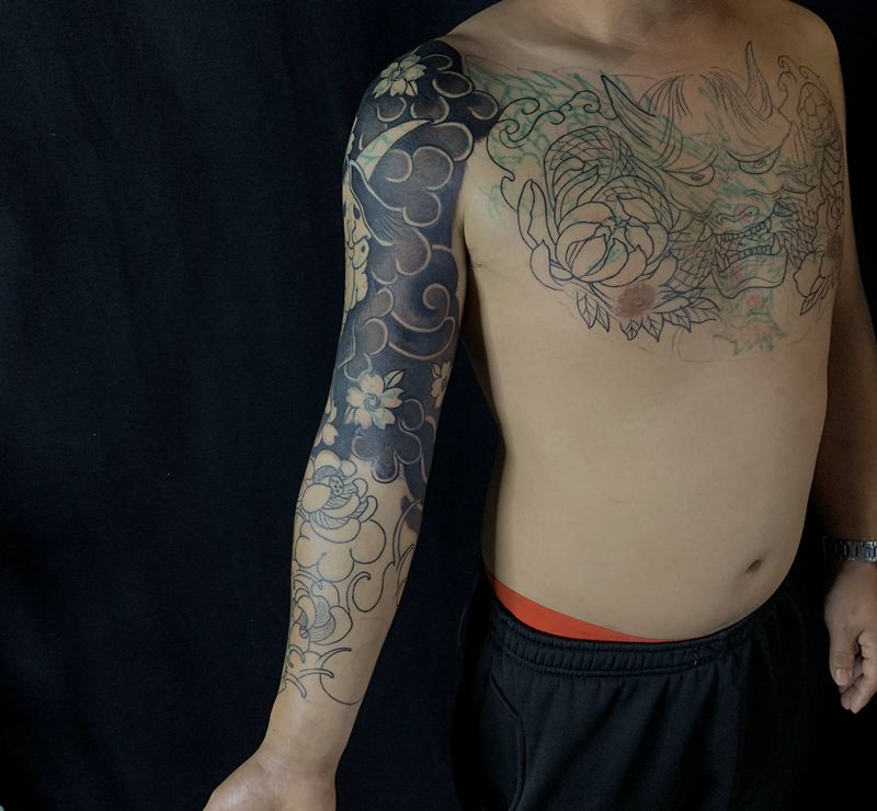 当前位置: 首页 >广东省惠州市纹身店-九龙堂刺青纹身图案>日式花臂纹身图片_老传统纹身图案