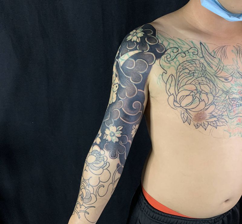 当前位置: 首页 >广东省惠州市纹身店-九龙堂刺青纹身图案>日式花臂纹身图片_老传统纹身图案