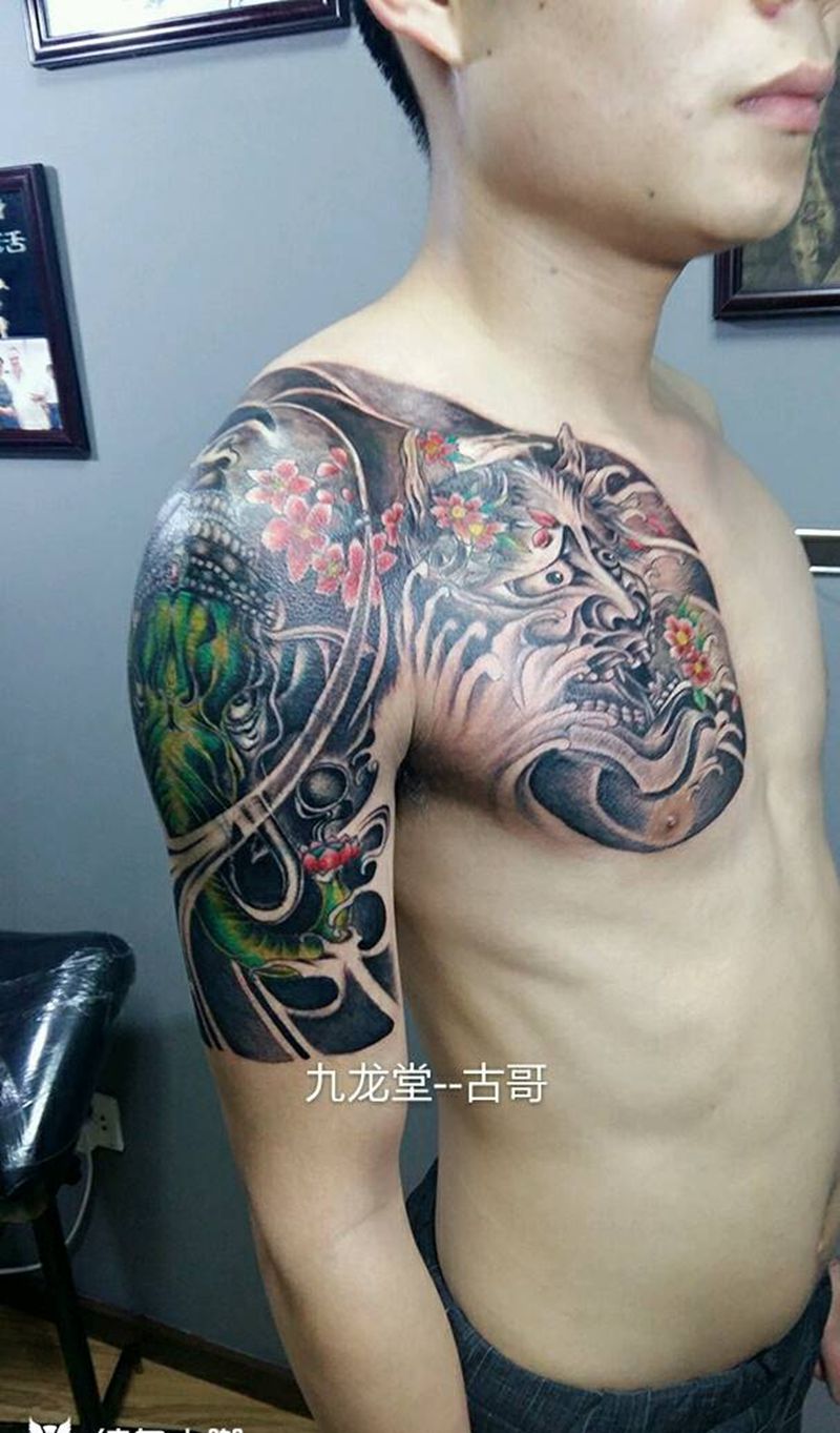 当前位置: 首页 >广东省惠州市纹身店-九龙堂刺青纹身图案>半甲完成16小时纹身图片