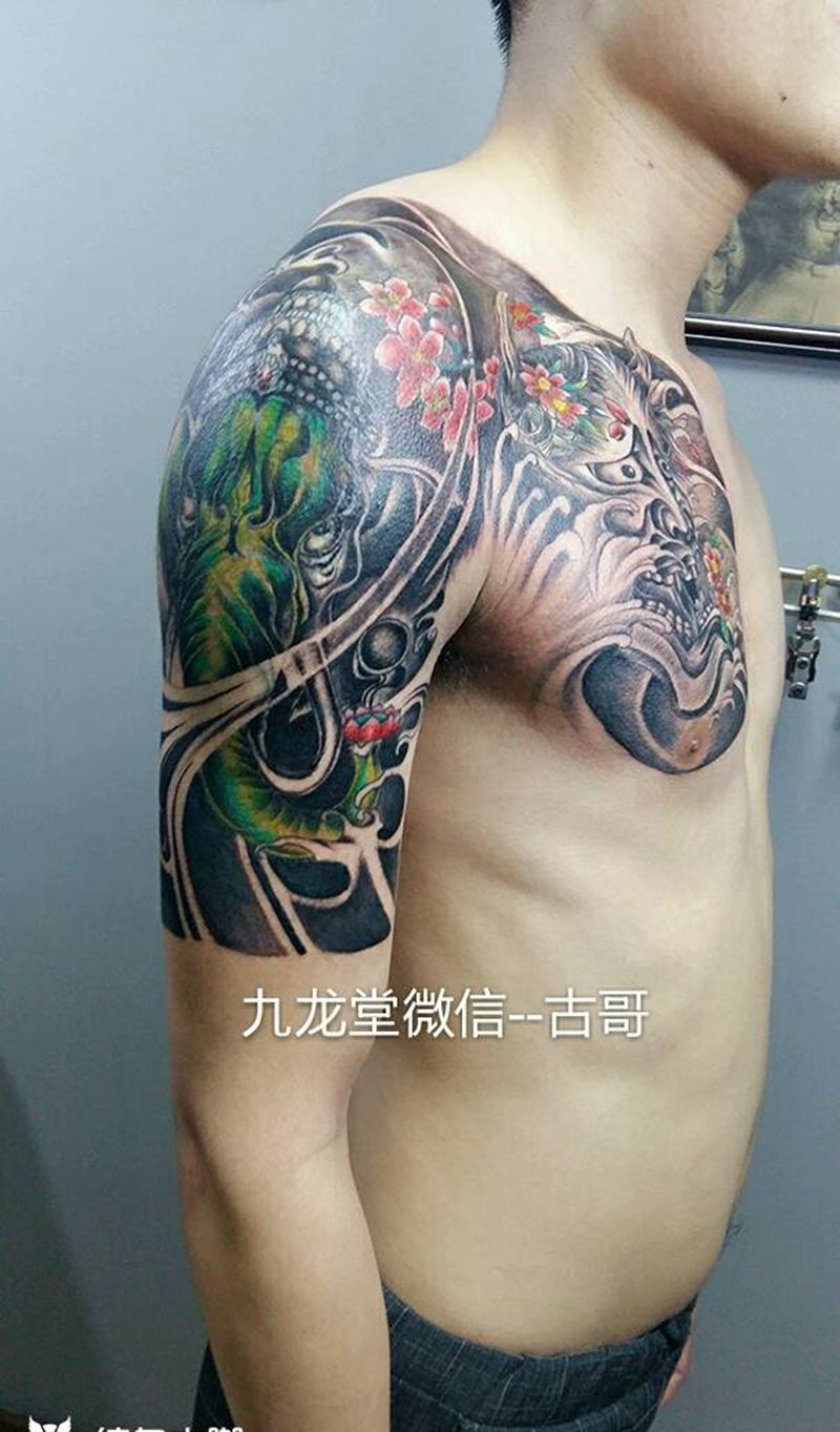 当前位置: 首页 >广东省惠州市纹身店-九龙堂刺青纹身图案>半甲完成16小时纹身图片