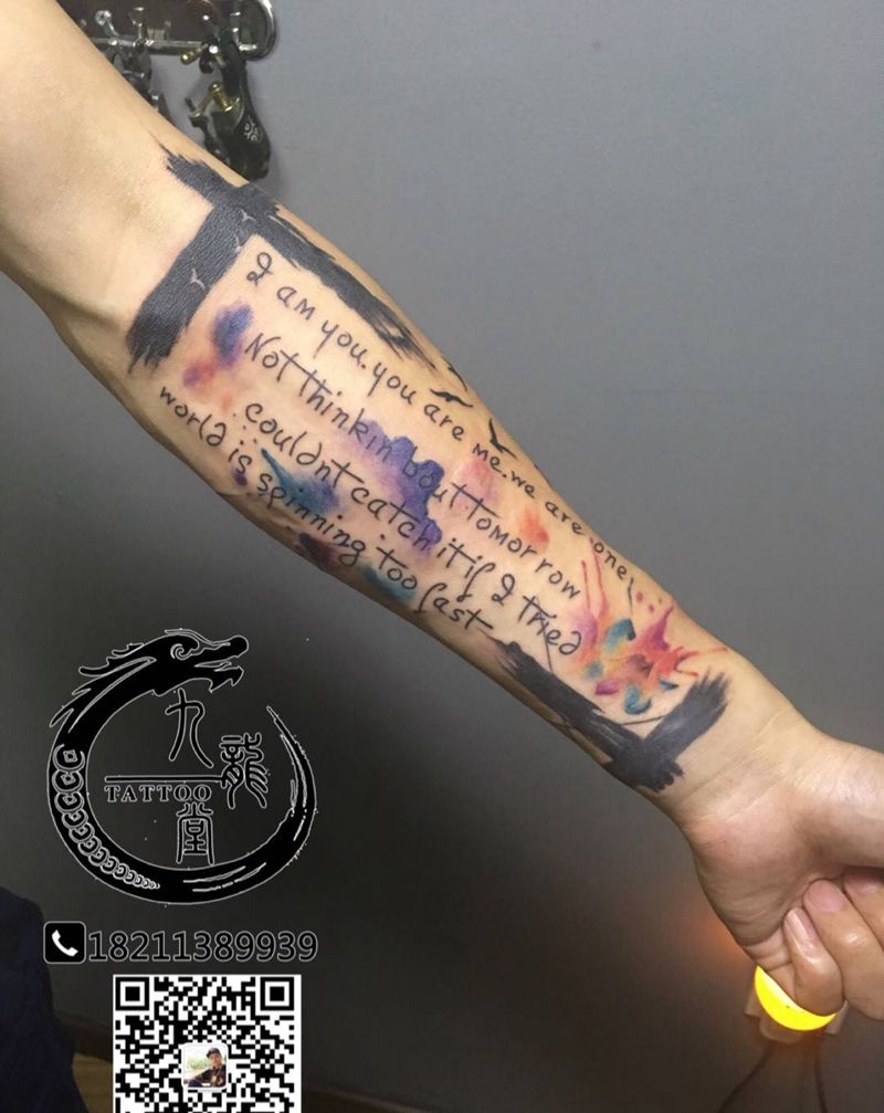 当前位置: 首页 >广东省惠州市纹身店-九龙堂刺青纹身图案>英文加泼墨纹身图片
