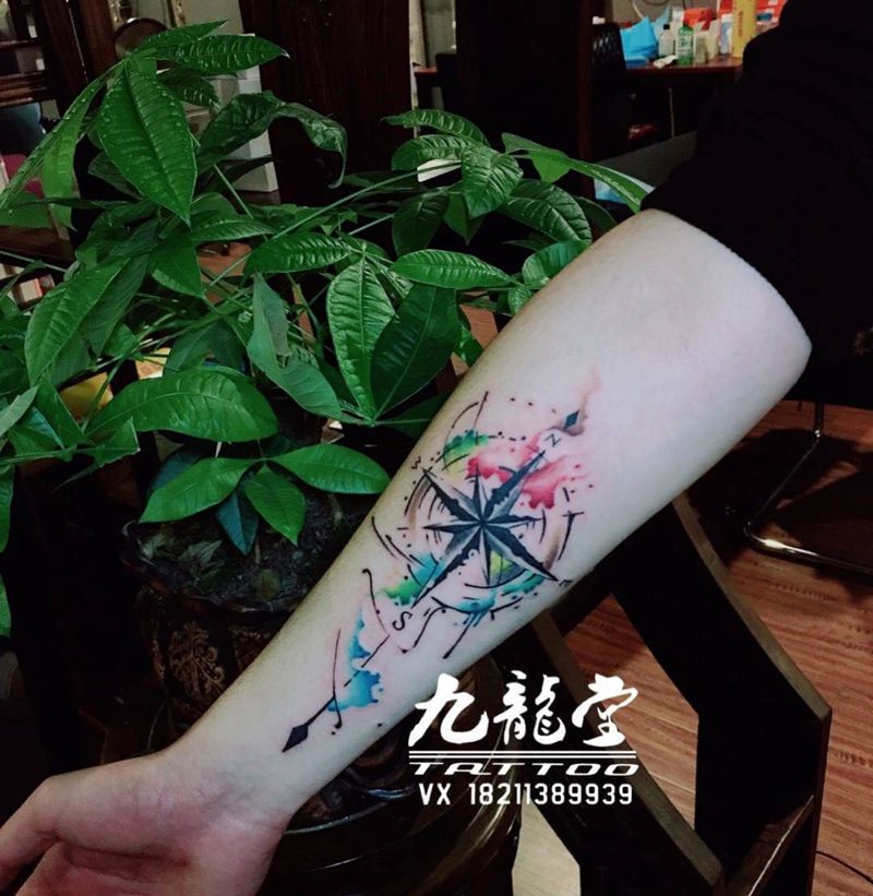 沷墨指南针纹身图片