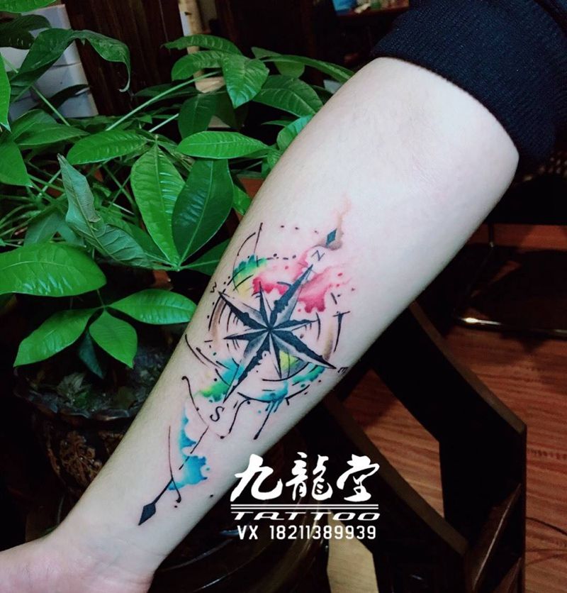 沷墨指南针纹身图片