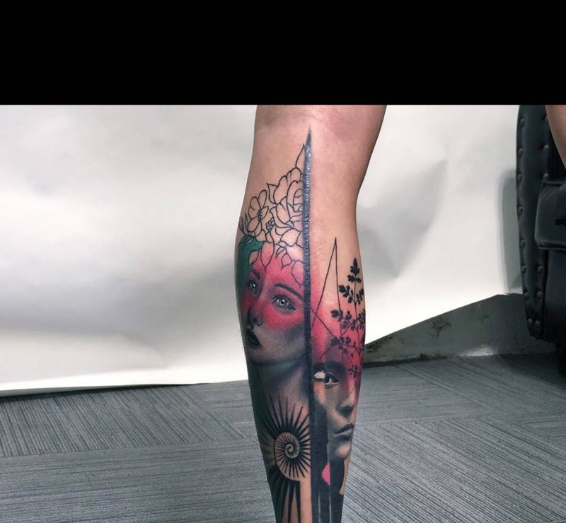 犹豫眼神纹身图片_腿部欧美写实几何原创手稿纹身图案