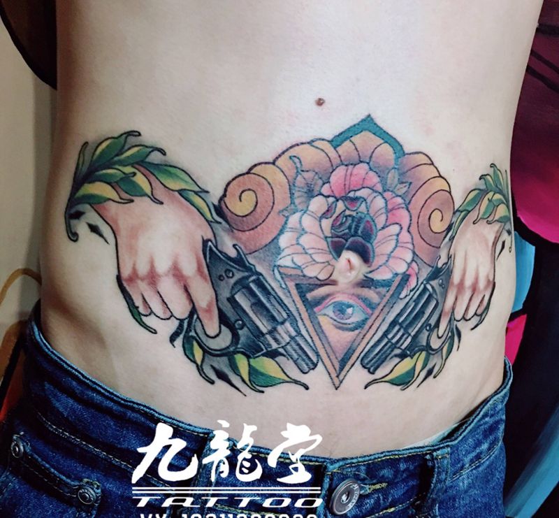 时尚性感的腹部莲花纹