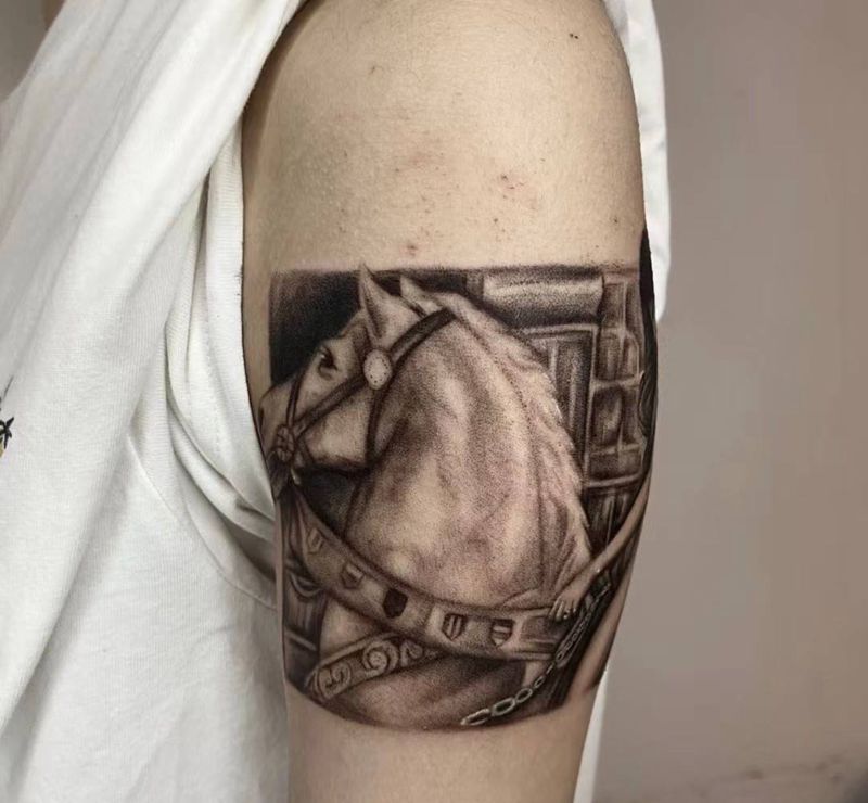 《马背上的Godiva夫人》纹身图片_手臂欧美写实纹身图案