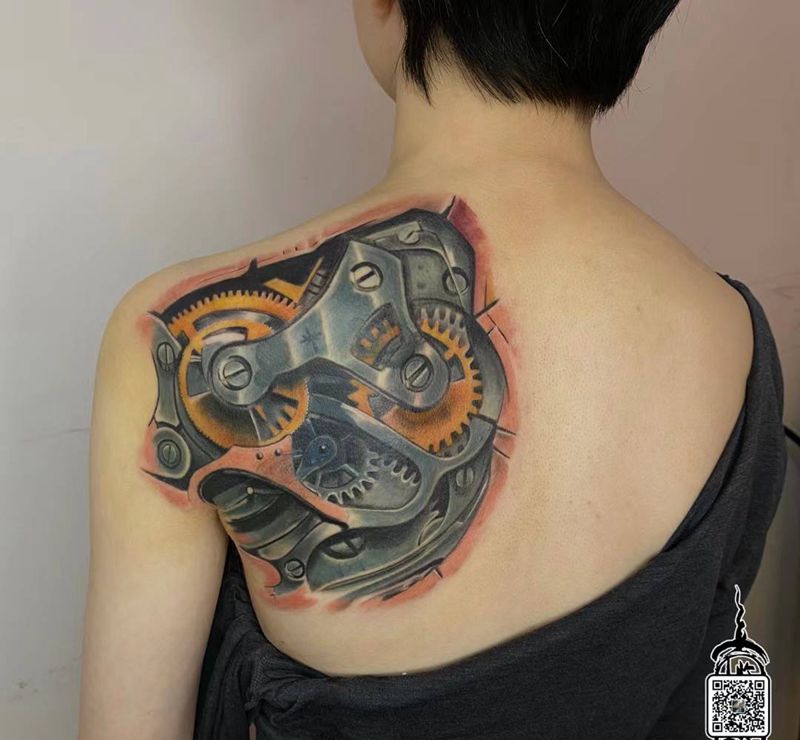 当前位置: 首页 >广东省惠州市纹身店-大揽刺青纹身图案>彩色机械写实遮盖纹身图片_背部欧美写实纹身图案