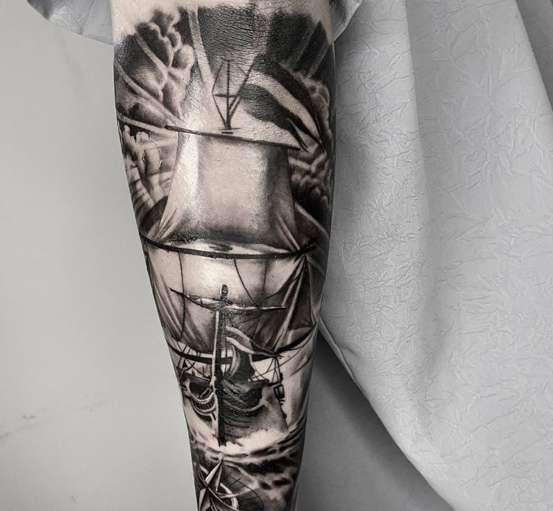 当前位置: 首页 >广东省惠州市纹身店-大揽刺青纹身图案>写实帆船纹身图片_手臂纹身图案