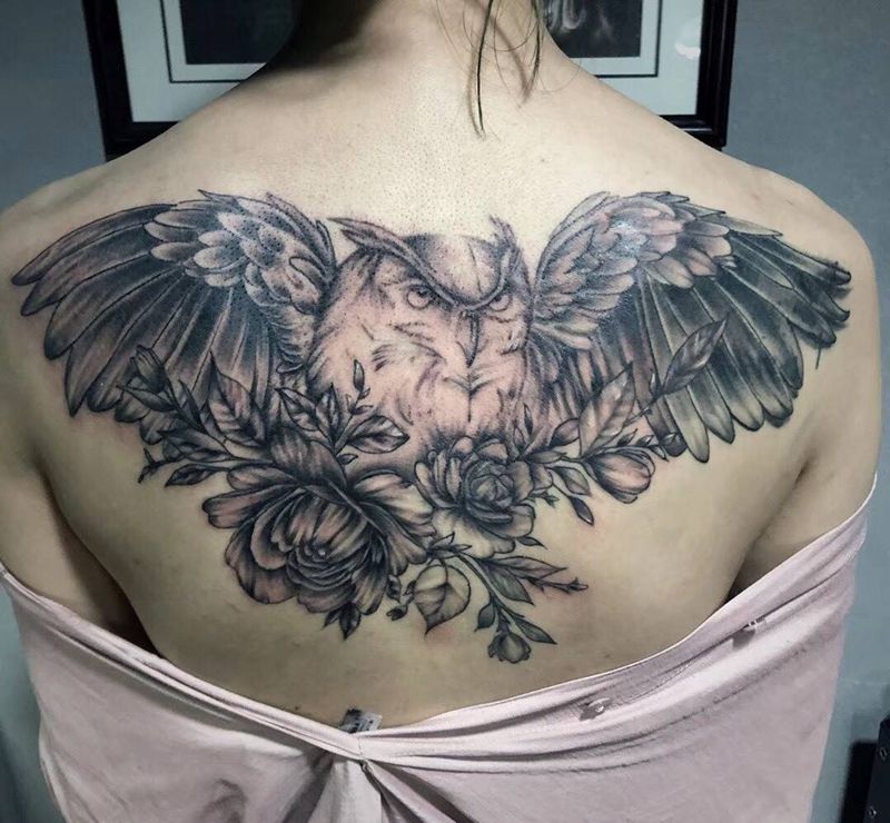 当前位置: 首页 >广东省惠州市纹身店-大揽刺青纹身图案>猫头鹰遮盖旧图纹身图片