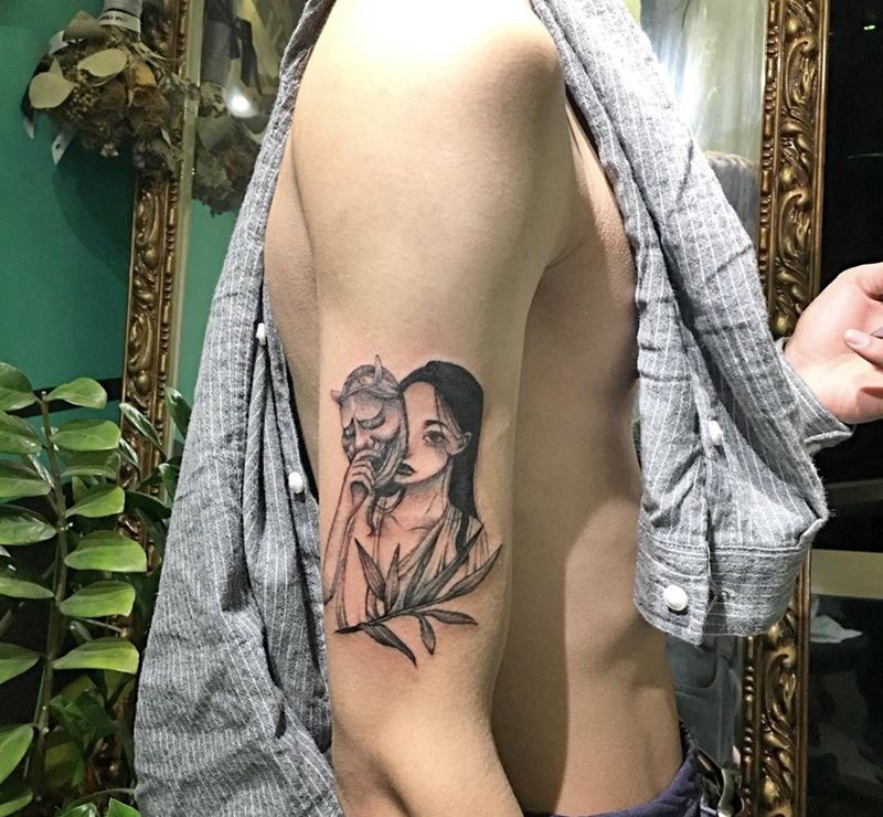 当前位置: 首页 >广东省惠州市纹身店-大揽刺青纹身图案>美女与般若纹身图片