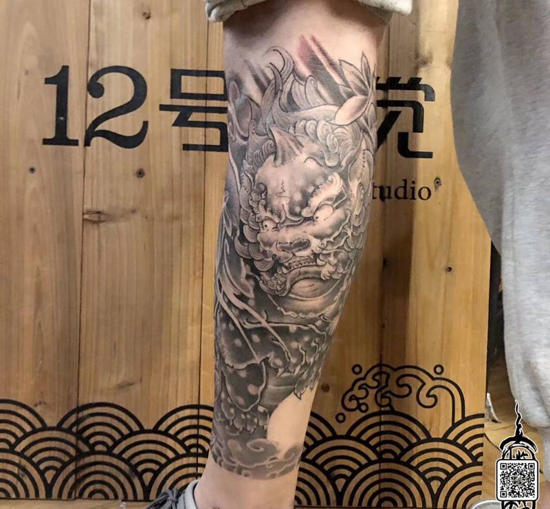 当前位置: 首页 >广东省惠州市纹身店-大揽刺青纹身图案>唐狮包腿纹身图片_腿部新传统纹身图案