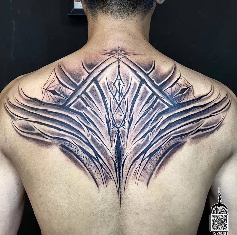 黑灰满背纹身图案