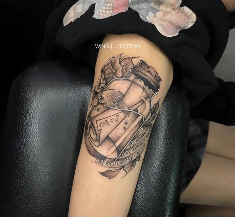 当前位置: 首页 >广东省惠州市纹身店-大揽刺青纹身图案>把愿望装进瓶子里纹身图片_手臂Old School纹身图案