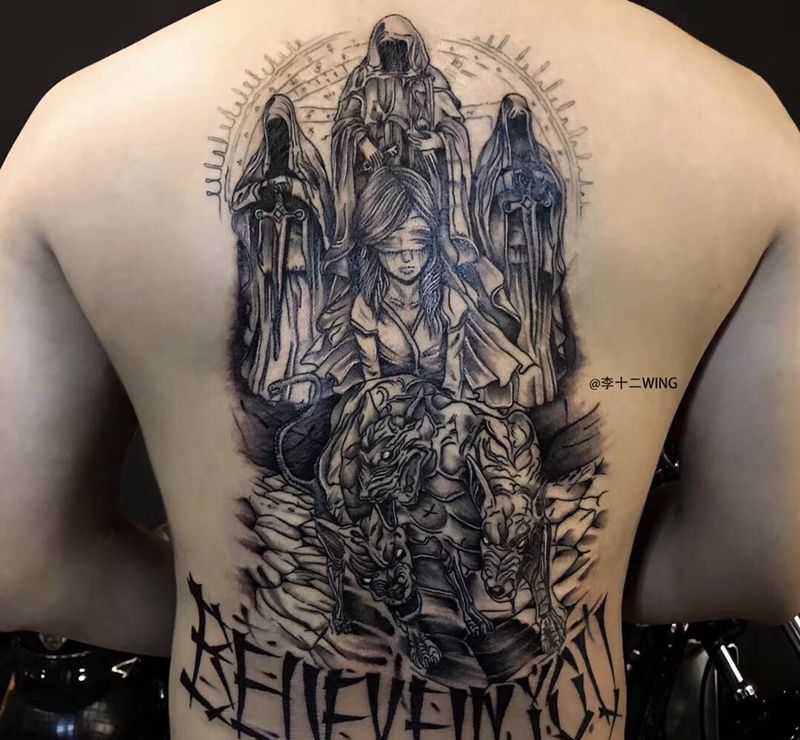 祈祷-恶灵退散纹身图片_背部欧美写实纹身图案
