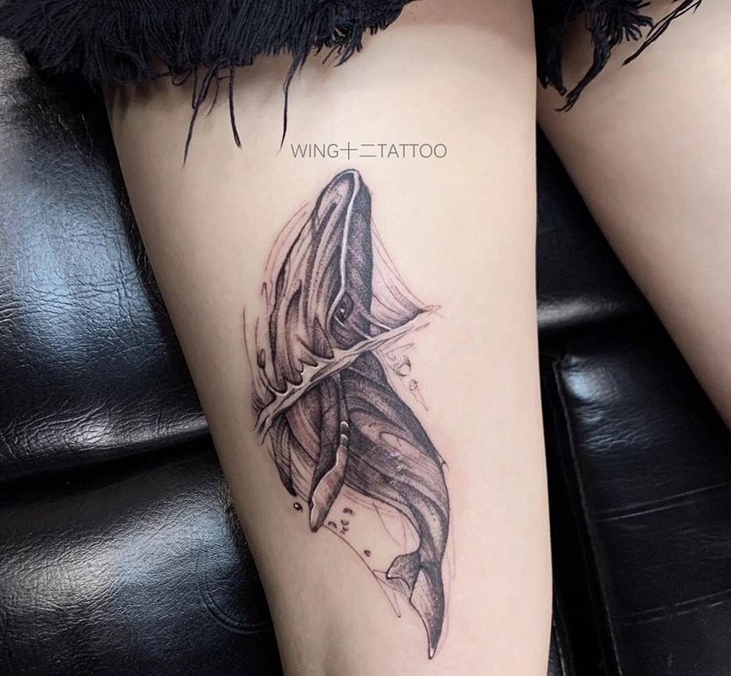 小鲸遮盖纹身图片_腿部图腾纹身图案