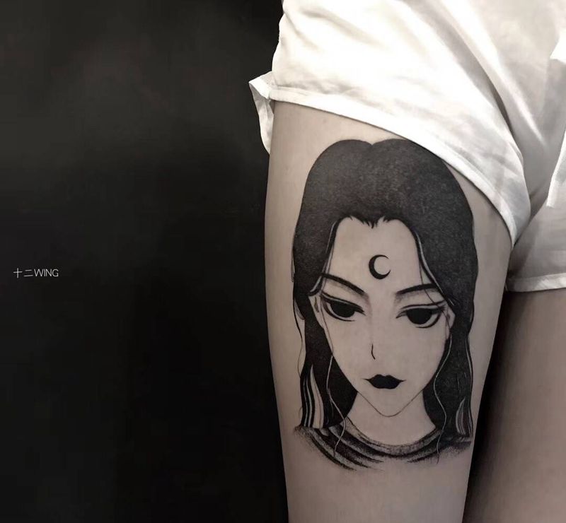 暗黑少女纹身图片_腿部图腾暗黑纹身图案