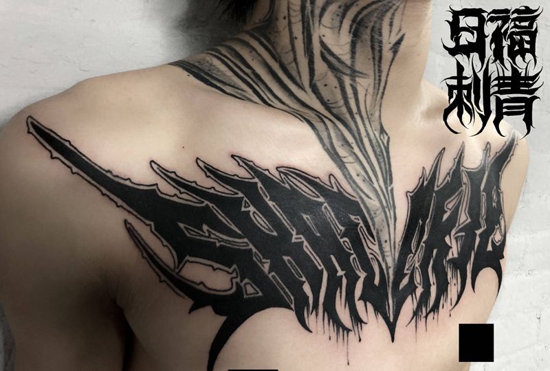 当前位置: 首页 >广东省肇庆市纹身店-日福刺青纹身图案>暗黑花体字纹身图片_胸部花体字纹身图案