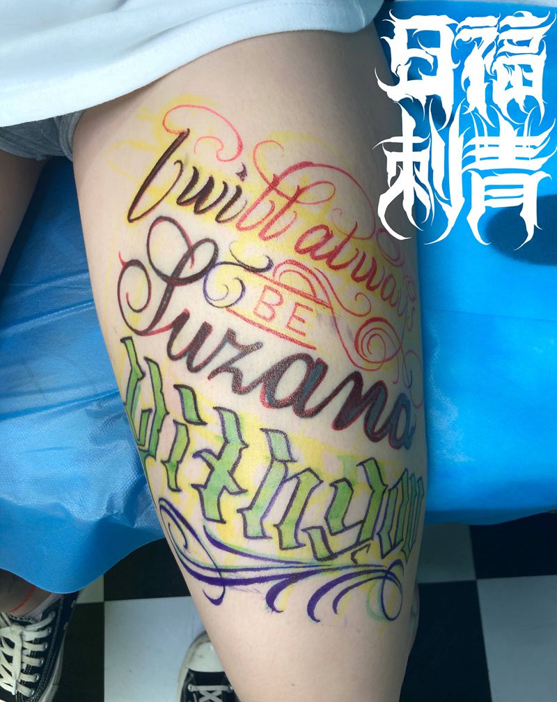 当前位置: 首页 >广东省肇庆市纹身店-日福刺青纹身图案>花体字纹身图片_腿部花体字纹身图案