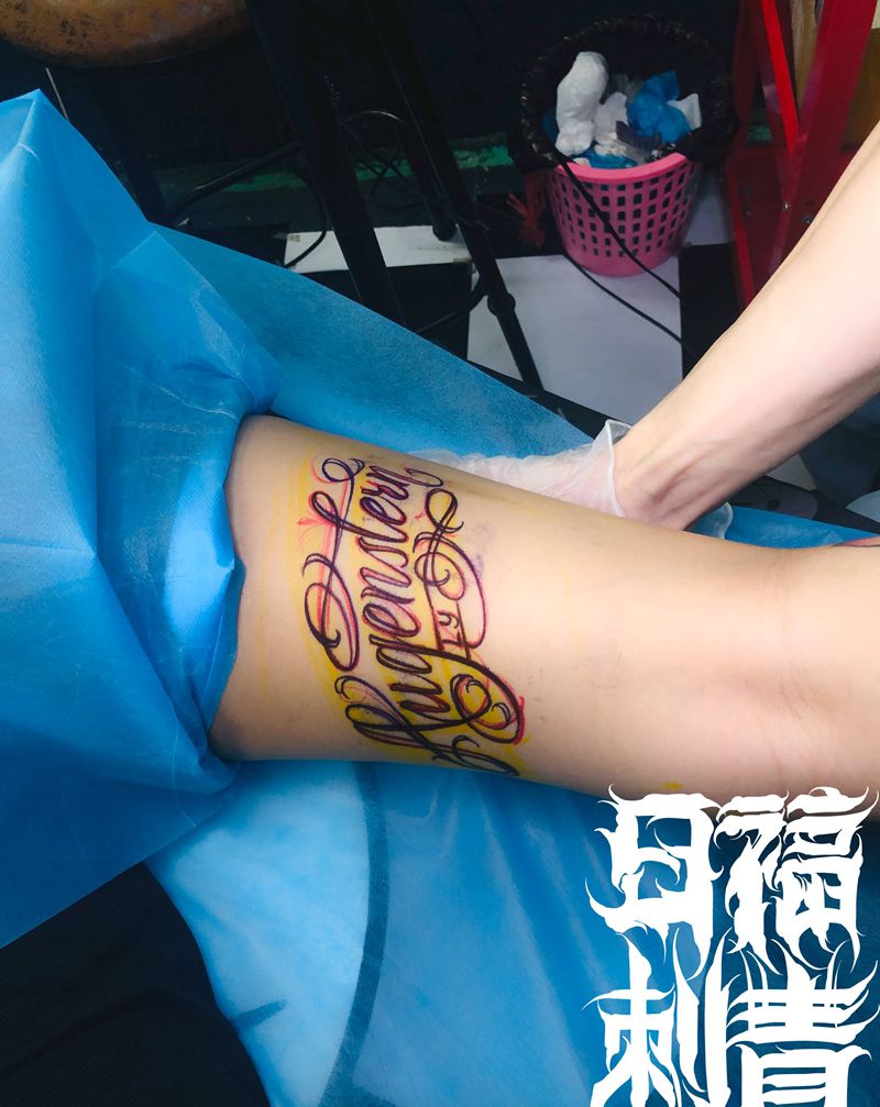 当前位置: 首页 >广东省肇庆市纹身店-日福刺青纹身图案>画体字纹身图片_腿部臀部花体字纹身图案