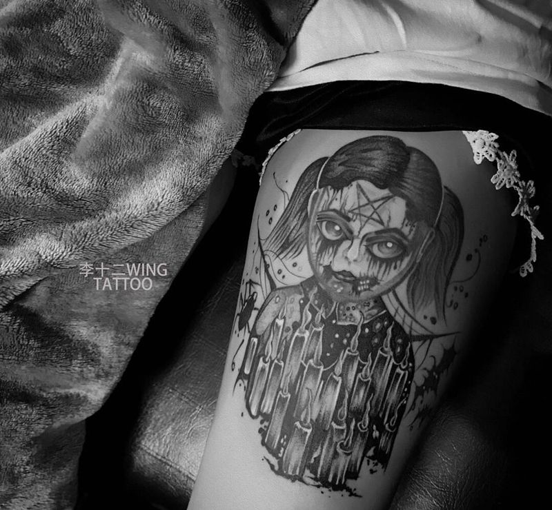 当前位置: 首页 >广东省惠州市纹身店-大揽刺青纹身图案>暗黑萝莉纹身图片_腿部欧美写实暗黑纹身图案