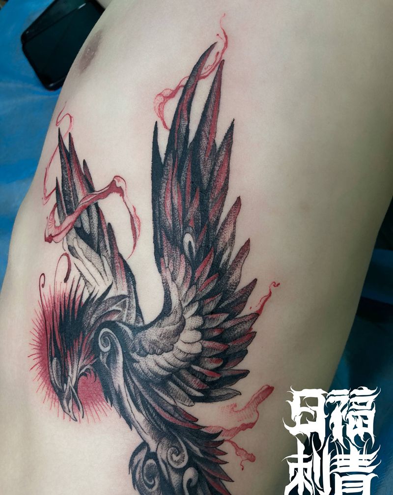 当前位置: 首页 >广东省肇庆市纹身店-日福刺青纹身图案>凤凰纹身纹身图片_腰部点刺新传统凤凰纹身图案