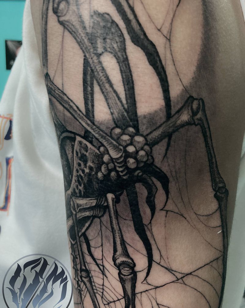 现场创作暗黑蜘蛛纹身图片_手臂蜘蛛暗黑暗黑蜘蛛纹身图案