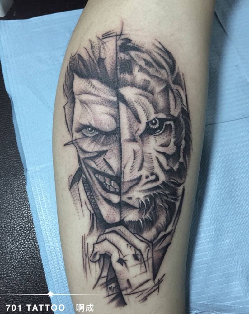• T网红王老大花腿龙纹身图片_腿部新传统纹身图案